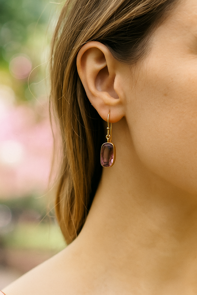Raw Amethyst Dangle Gold Plated Collet set Handmade February Birthstone Earring Boho Wholesale Spiritual Earrings for Women