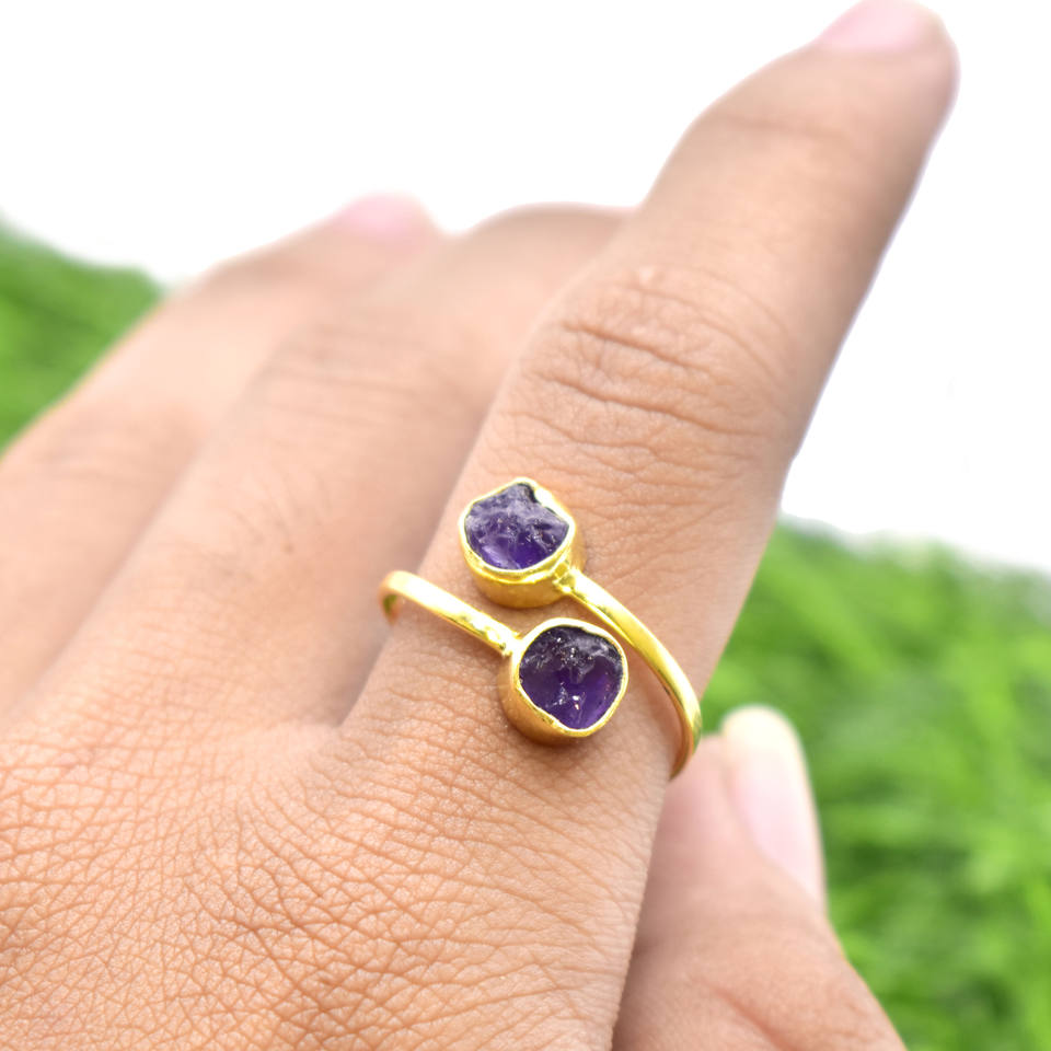 Model Number:Amethyst Double Stone Ring