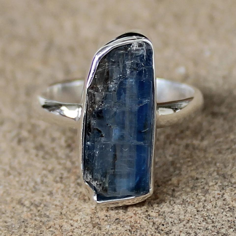 Raw Blue Kyanite Ring 925 Solid Sterling Silver Geometric Shape Band Natural Blue Gemstone Luxury Christian Graduation Fine