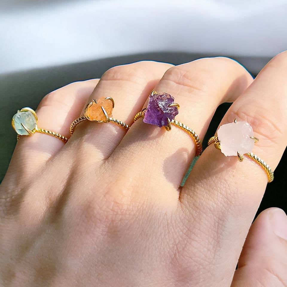 Raw Crystal Quartz Gemstone Twisted Band Ring - Birthstone Adjustable Ring Jewelry - Statement Ring