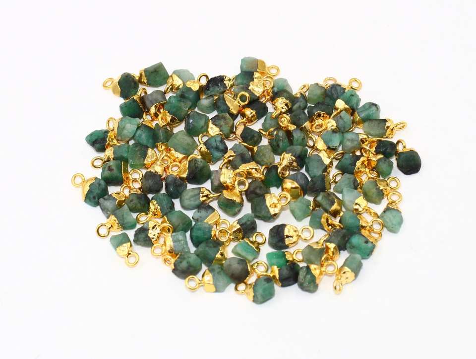 Raw Emerald Gemstone Pendant 4-5mm Gold-Plated Handmade Charm for Jewelry Making DIY Necklace and Craft Accessories