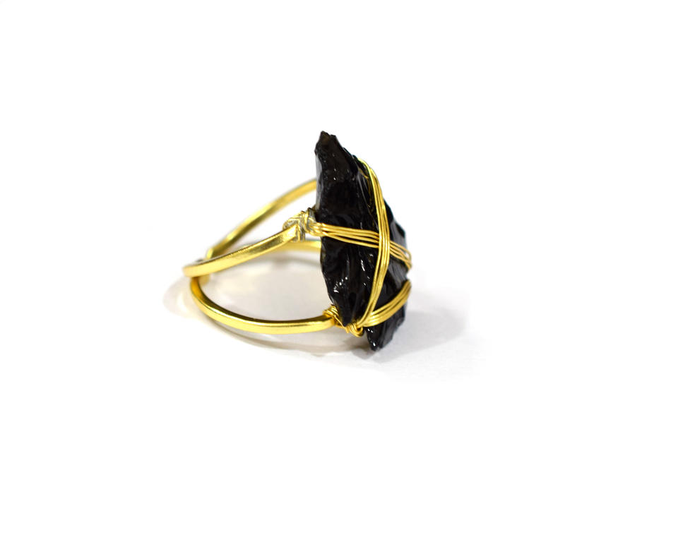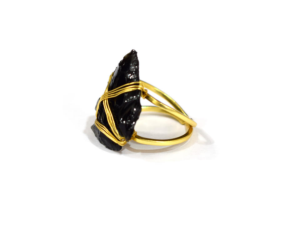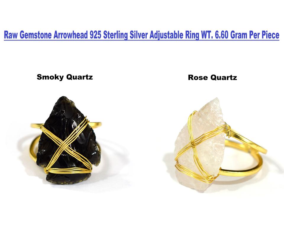 Raw Gemstone Arrowhead 925 Sterling Silver Adjustable Gold Plated Handmade Gift for Her Woman Fancy Finger Ring