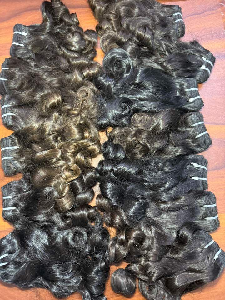Raw Indian Baby Curly Human Hair Extensions 100% Virgin Cuticle Aligned Natural Texture Remy Double Drawn Machine Double Weft