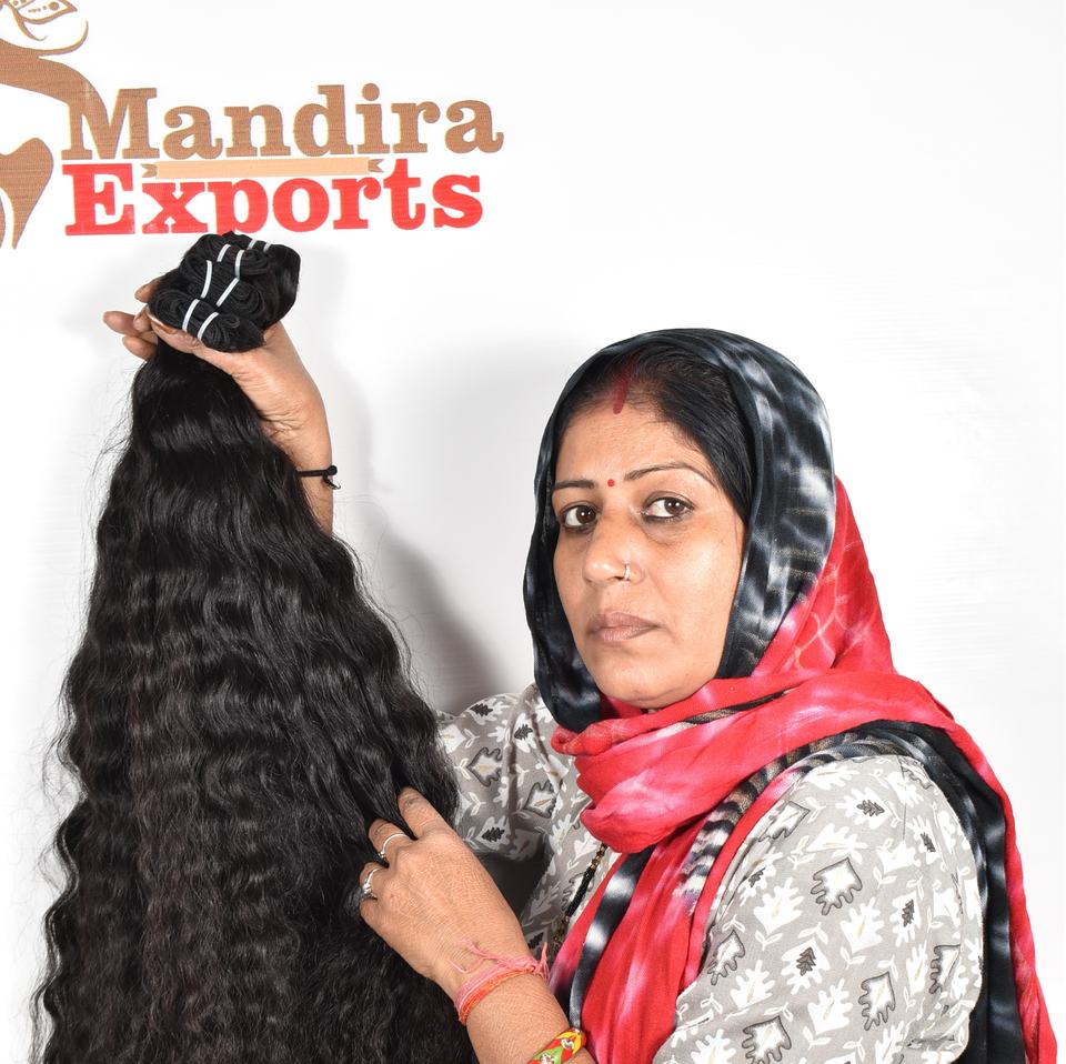 Raw Indian One Donor Unprocessed Natural Bundles Weaving Black Color Wavy Temple Human Hair Extensions