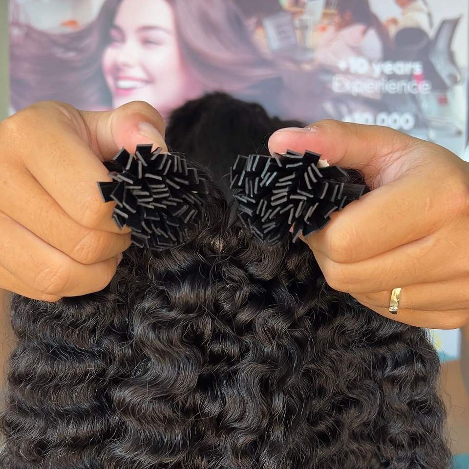 Raw Ktip Burmese Curly Hair Extensions 8-40 Inch Natural Color Burmese Virgin Flat Tip Extensions From Vietnam