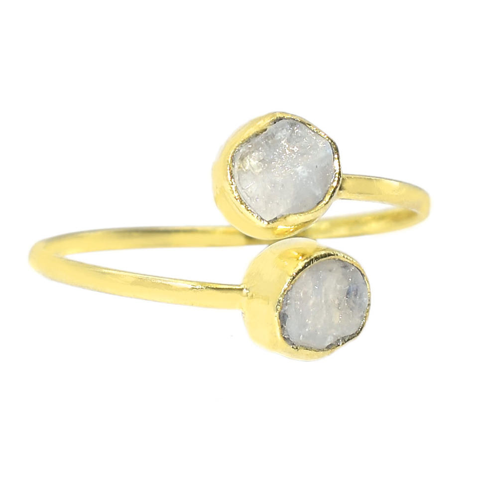 Raw Moonstone Birthstone Collet Ring - Double Stone Adjustable Ring, Handmade Gold Plated Statement Ring, Unique Engagement Ring
