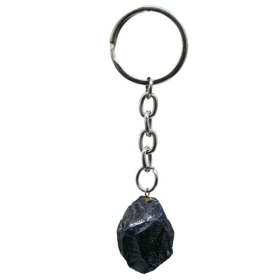 Raw Natural Blue Goldstone Crystal Keychain for Creativity and Inspiration Wholesale Raw Blue Goldstone Crystal Keychains