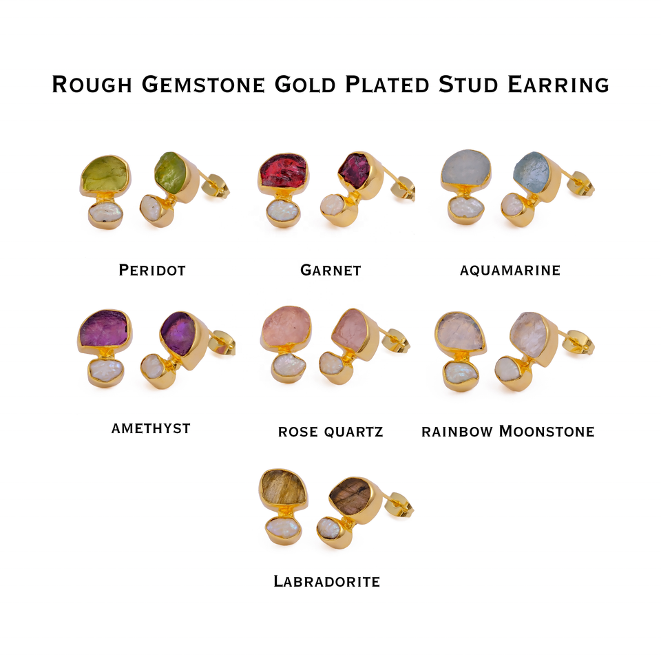 Raw Peridot Pearl August Birthstone Stud Gold Plated Handmade Rough Gemstone Women Trendy Wedding Brass Wholesale Earrings