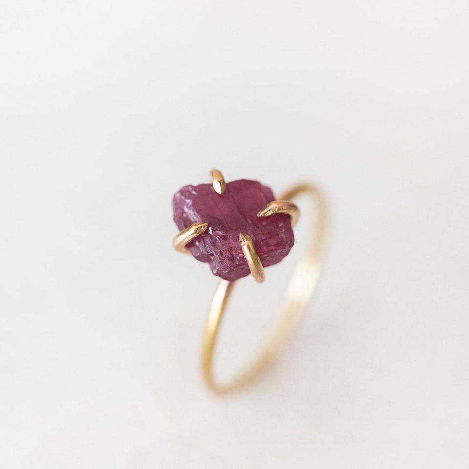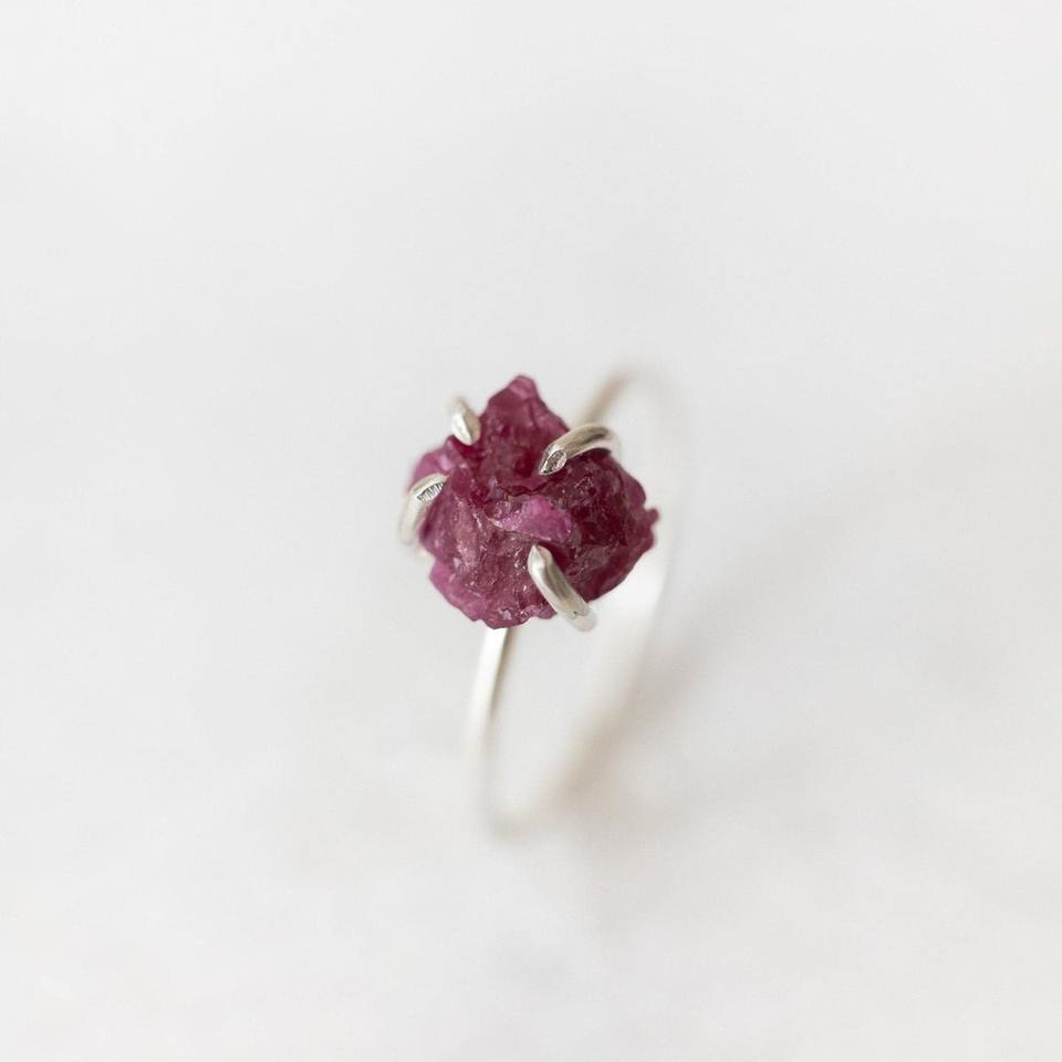 Raw Ruby Ring 8-10mm Prong Set Natural Gemstone Ring Brass Adjustable Dainty Handmade Jewelry for Women