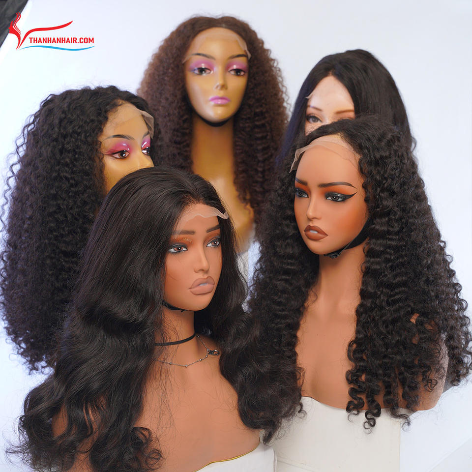 Raw Vietnamese curly wig human Hair Extension Brown and natural black color raw Burmese curly wig Swiss HD lace front