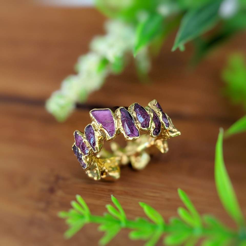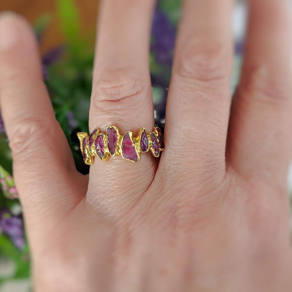 Raw Rhodolite Garnet Electroplated Rings Original Garnet Rough Gold Plated Rings Gemstone Electroplated Jewelry Minimalist Ring