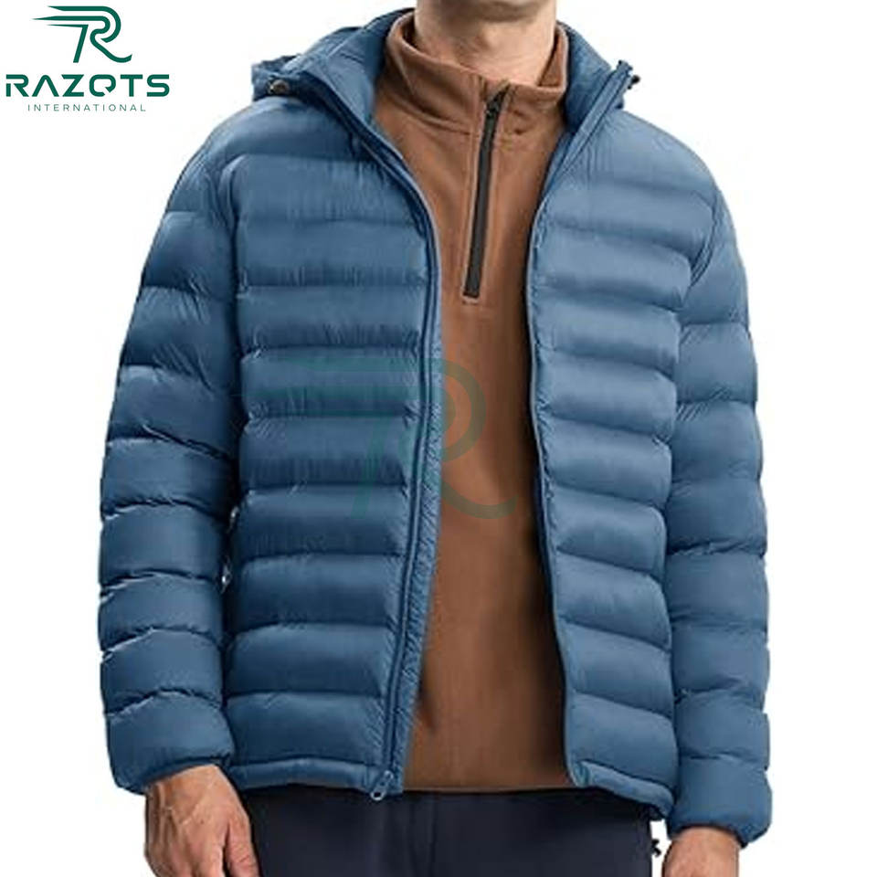 Razorts Factory Custom Black Casual Loose Dyed OEM Service Winter Quilted Padding Hooded Windproof Breathable Jacket Men
