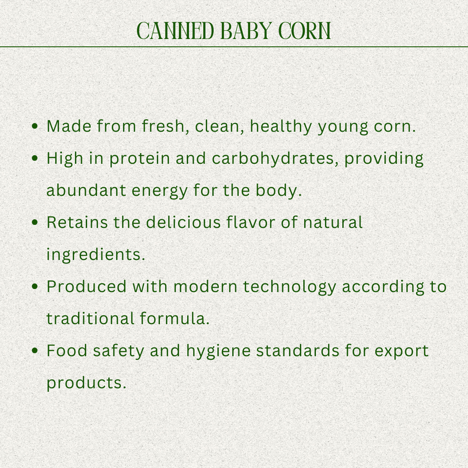 Ready for Export Canned Whole Baby Corn Vietnam Sweet Flavored Fresh Vegetables Preserved Brine Water Various Eat Pattern Styles