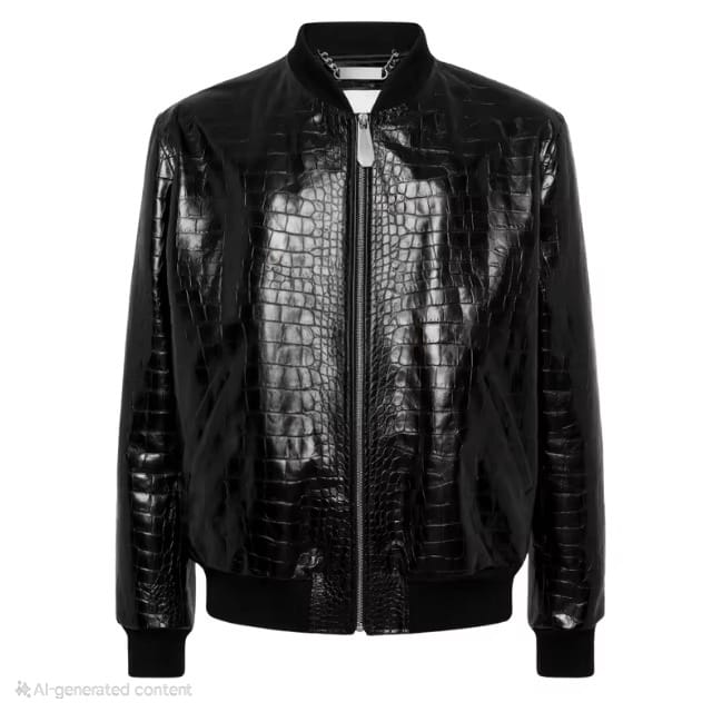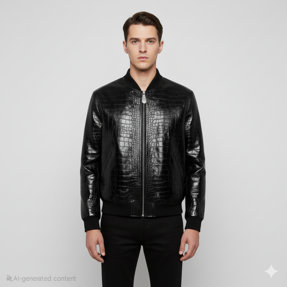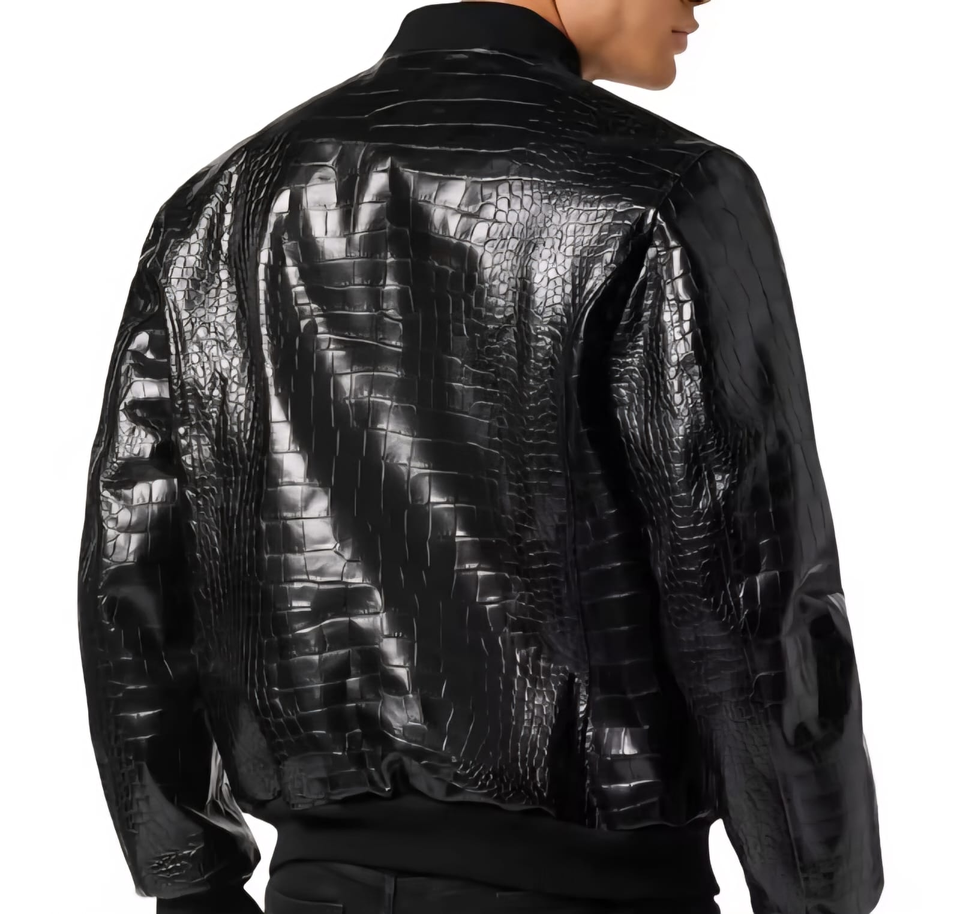 Ready Ship Black Fish Leather Quilted Varsity Jacket Men Luxury Winter Breathable Waterproof Windproof Hooded Real Exotic Croc