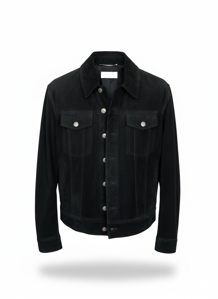Ready Ship Black Suede Men's Real Leather Vintage Slim Fit Waterproof Trucker Biker Winter Bomber Jacket