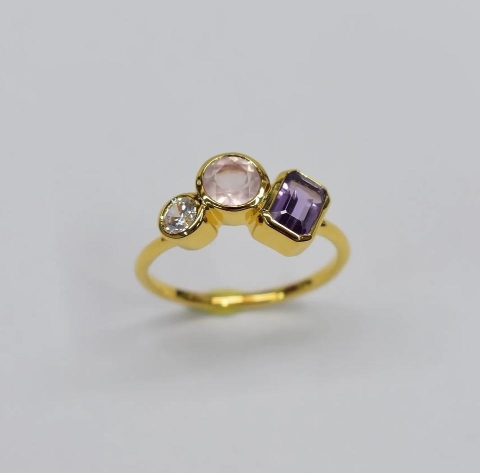 Ready Ship Customizable Minimal Natural Amethyst Cubic Zirconia Ring Vintage 14K Gold Plated S925 for Engagement Anniversary