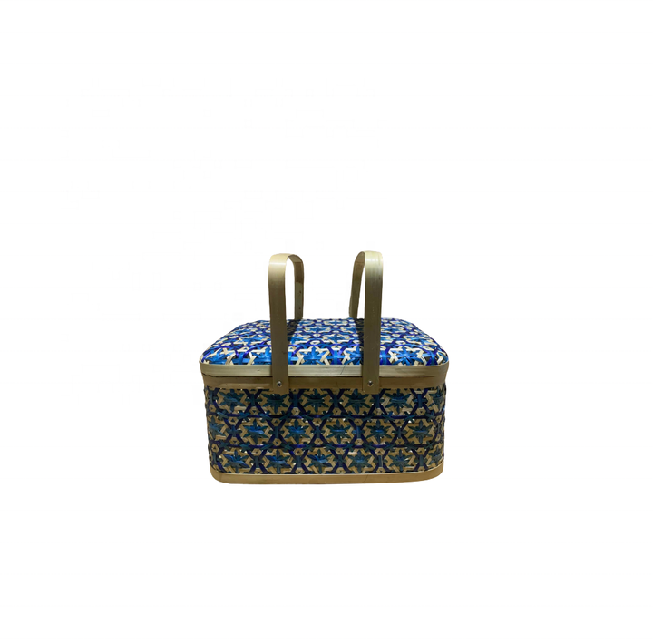 Ready Ship Decorative Bamboo Flower Weave Baskets Woven Storage Fruit Gift Container Box Bamboo Flower-Patterned Wicker Crafts