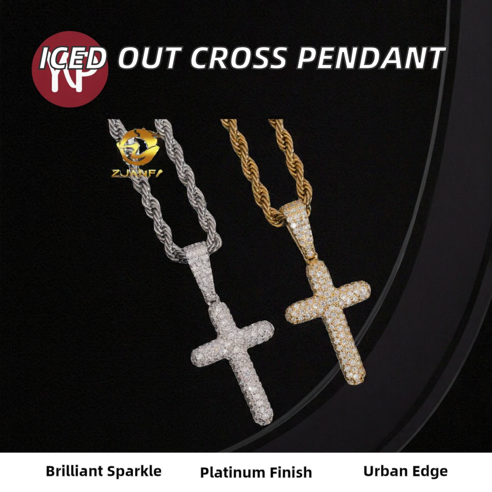 Ready Ship Iced Cross Pendant 925 Silver Platinum Plated Fine Hip Hop Jewelry Pendants Charm VVS Moissanite