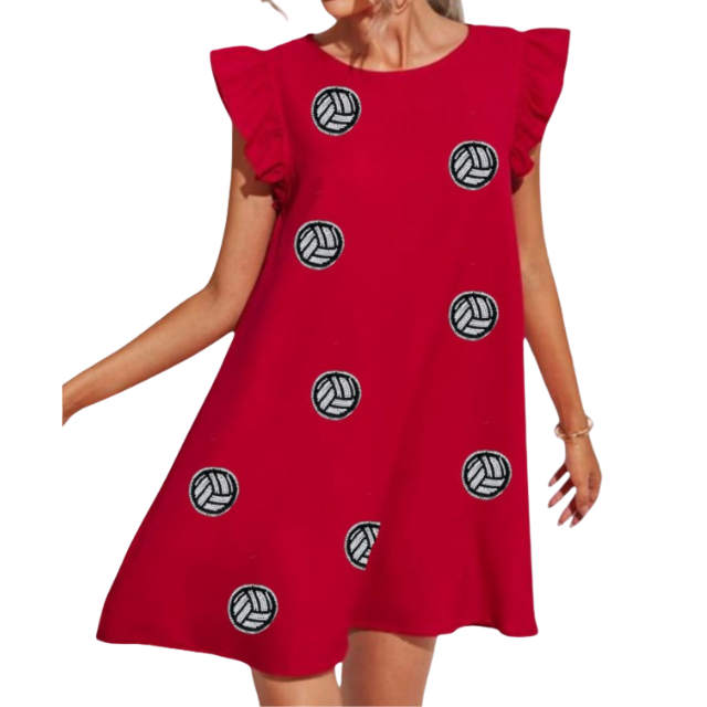 Volleyball Sequin hand sewn tshirt Dress cap ruffle sleeves