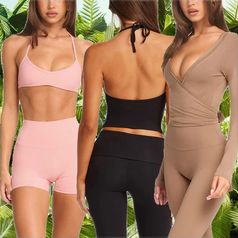 Ready Ship Popular Naked Feeling Sexy Running Wear Quick Dry Sports Suits Women Fitness Lightweight Yoga Set Elastic Waist