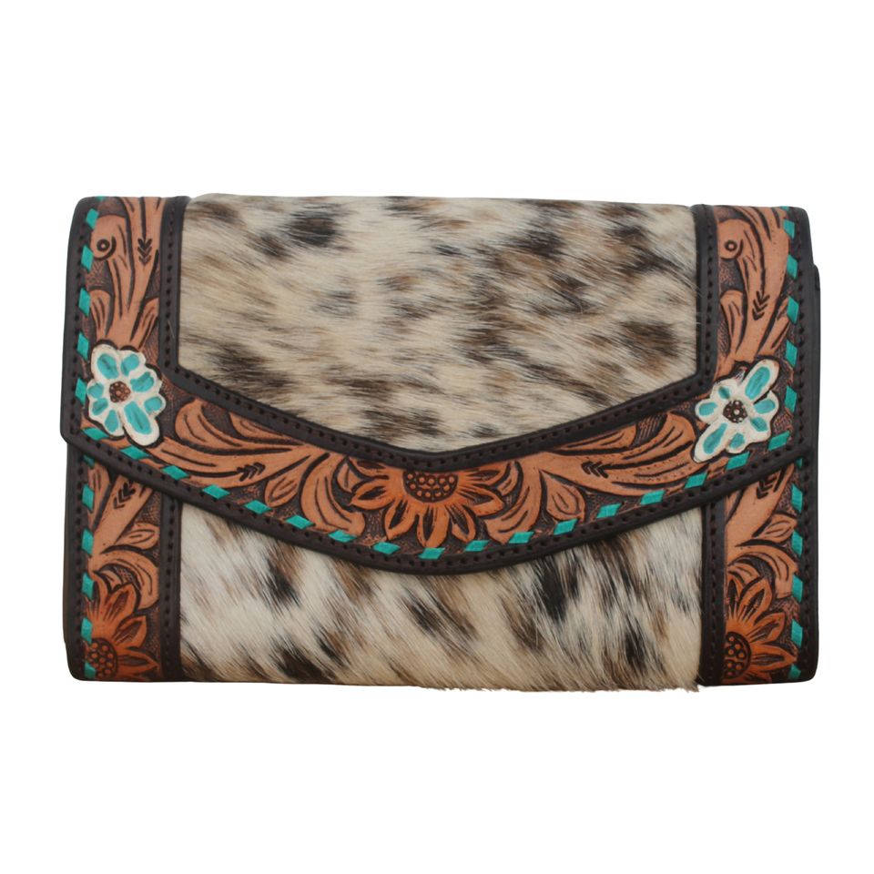 Ready Ship Soft Western Cowhide Leather Clutch Wallet Handmade Floral Design Zipper Closure Eco-Friendly Large Capacity Casual