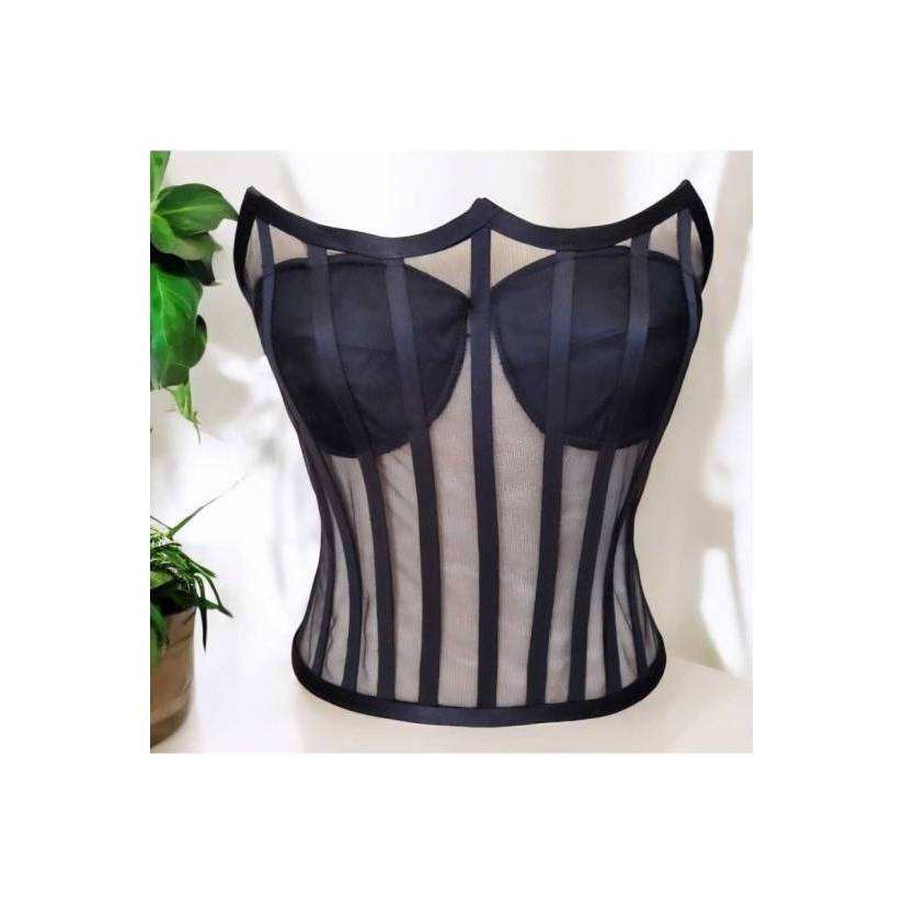 Ready Size Black Transparent Boned Corset Bustier Wedding Evening Dress