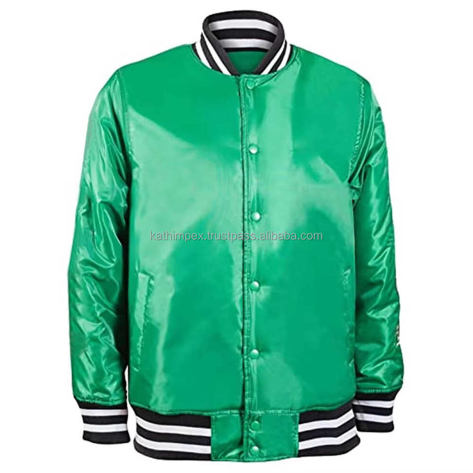 Ready Stock Baseball Satin Green Bomber Custom Logo Lightweight Men's Jackets for Casual and Team Wear