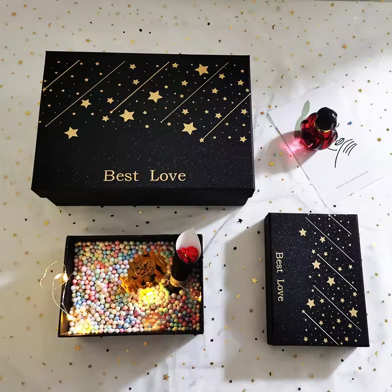 Ready Stock Black Starry Sky Gift Packaging Heaven and Earth Cover Creative Paper Box in Stock for Clothes Cosmetic