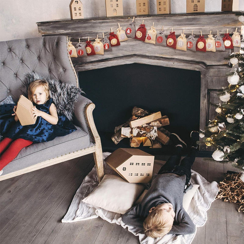 Ready Stock Linen Gift Bag Large Children's Countdown 1-24 Cloth Advent Calendar Candy Bag Christmas Holiday Supplies