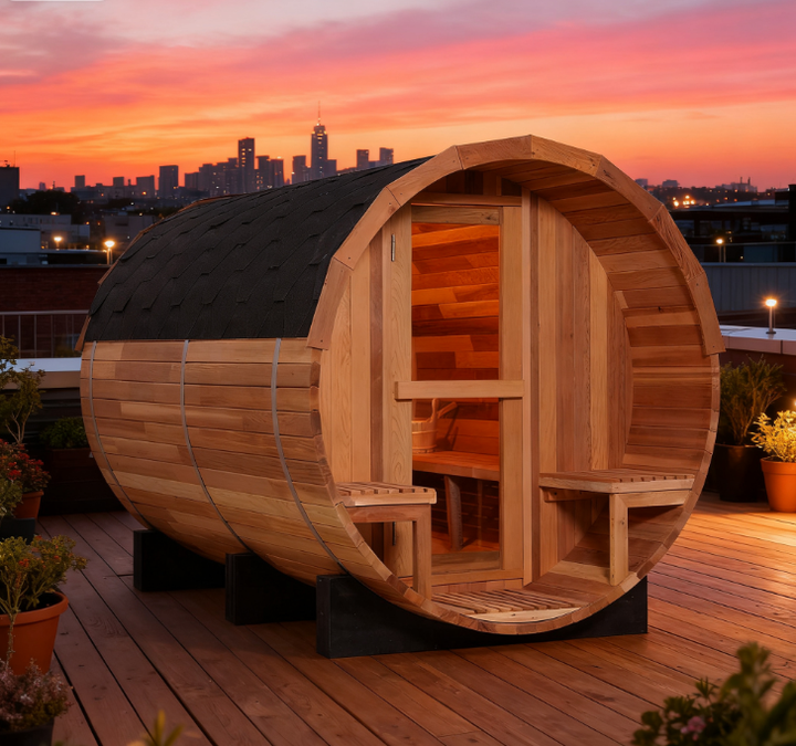 Ready Stocks Traditional 4 Person Outdoor Wooden Sauna Room Solid Wood Wet Steam Barrel Sauna for Villas