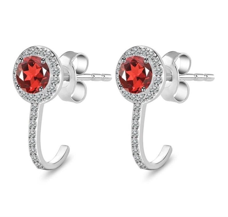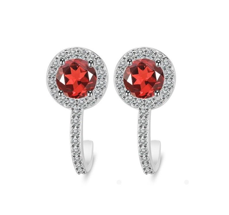 Ready Ship 14K White Gold Plated Stainless Steel Hoop Earrings Garnet Diamond Stones 925 Silver Indian Jewelry Trusted Supplier