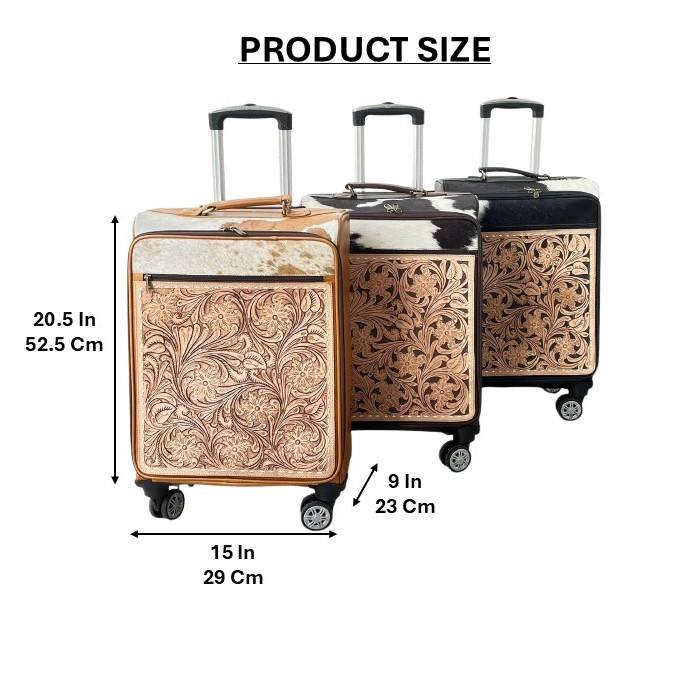 Hand Tooled Cowhide Leather Wheel Trolley Suitcase