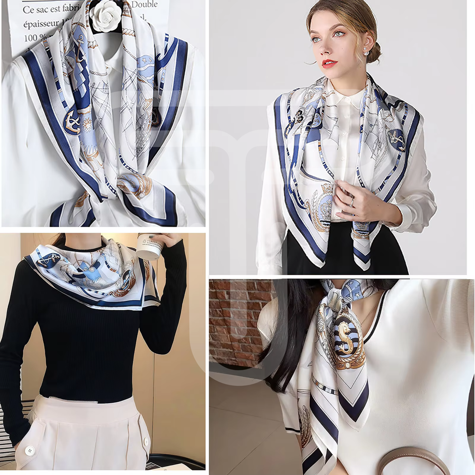 Ready for Ship 90x90 cm 60 Designs Luxury Stylish Square Silk Feeling Satin Head Scarf for Women All Seasons Gift