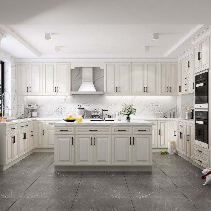 Ready to Assemble White Kitchen Complete Set with Island Furniture Solid Wood Shaker Kitchen Cabinet