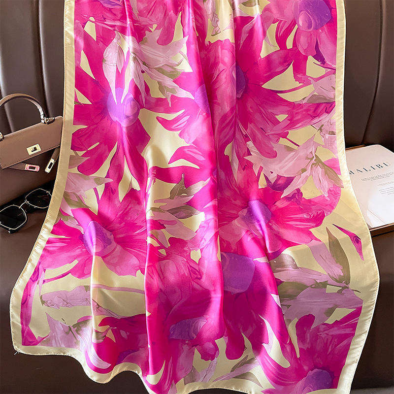Ready to Ship 2025 Popular Ladies Blue Flower Pattern Silk Scarf Luxury Silk Printed Long Soft Women's 90*180 Silk Scarf Shawls