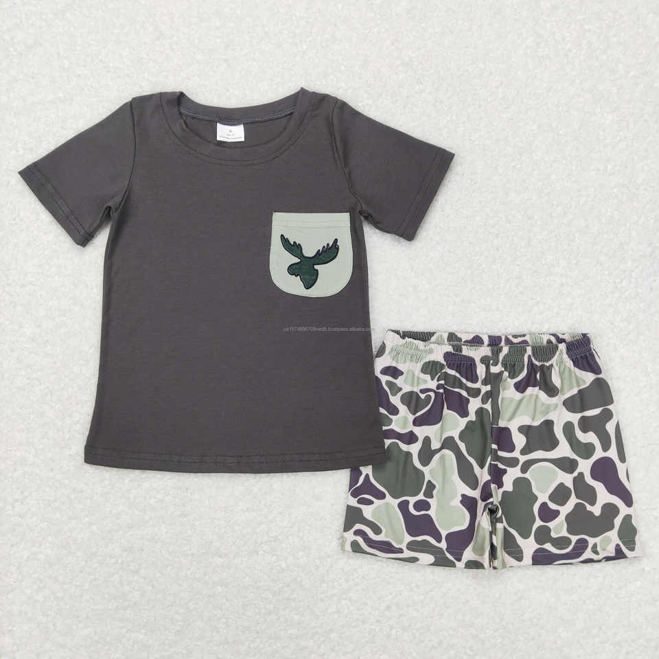 Ready to Ship Casual Baby Boys Shorts Wholesale Clothing for Duck Hunting Season Brown Short Sleeve Camouflage Pocket Outfit