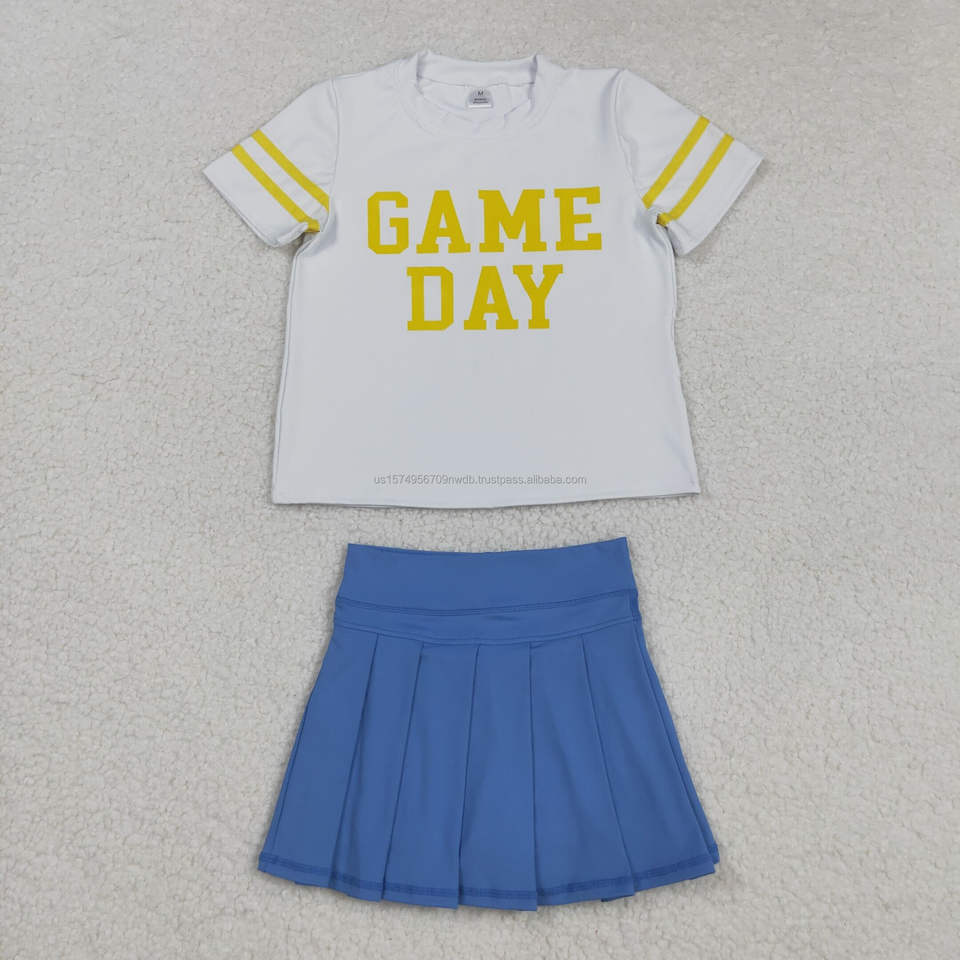 Ready to Ship Casual Sport Clothing for Baby Girls Red Game Day Print Short Sleeve Stretchy Top Skort Active Outfit Wholesale