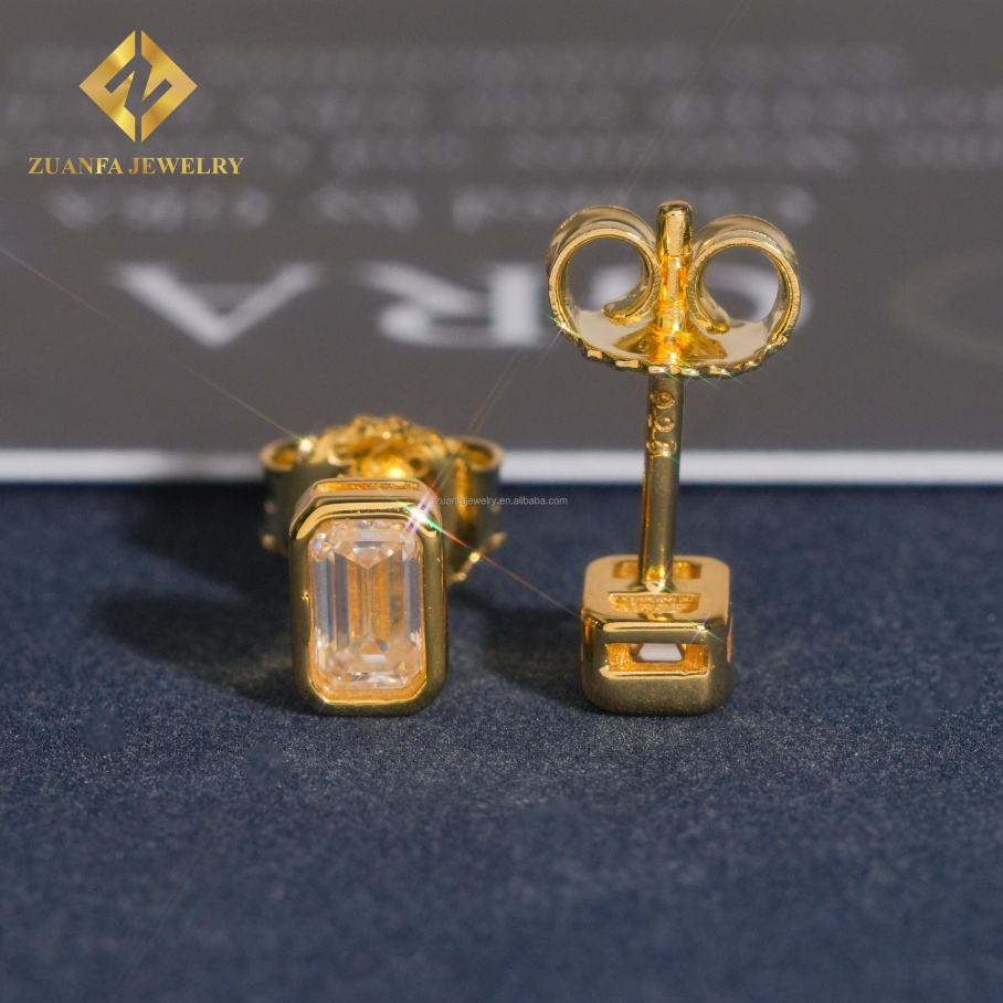 Ready to Ship Drop Shipping Jewelry Emerald Fancy Cut Vvs1 Moissanite Diamond 925 Sterling Silver Men Screw Back Stud Earrings