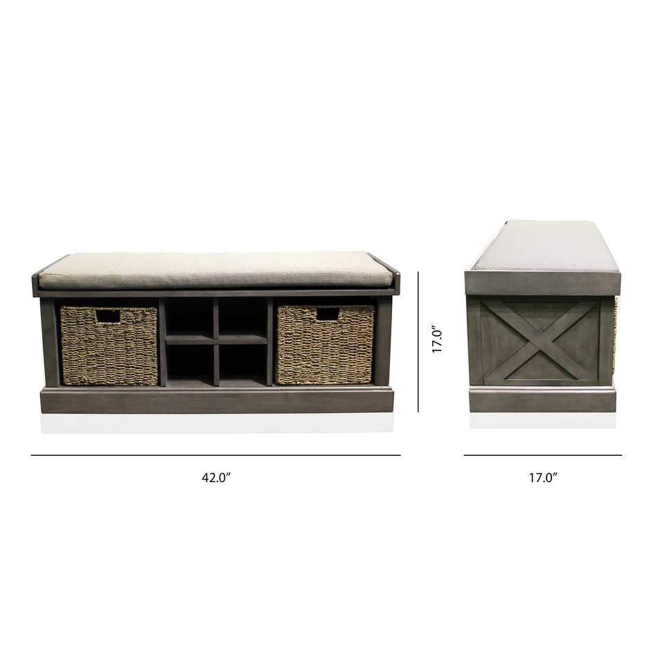 Ready to Ship Gorge Storage Entry Hall Shoe Bench with Woven Baskets for Master Bath Essentials Organizer Patio Bench Wardrobe