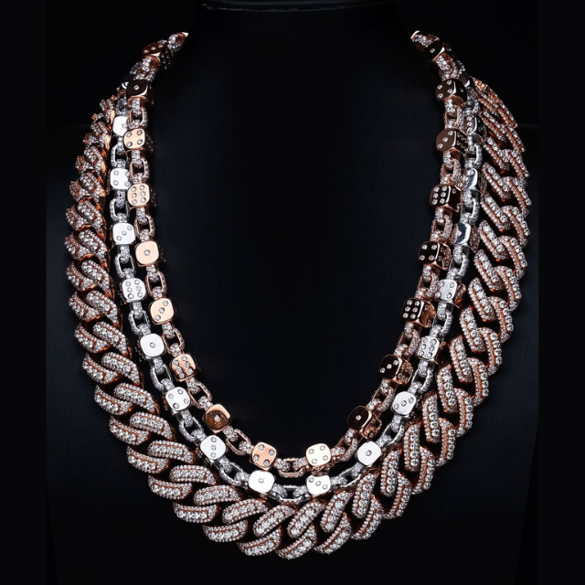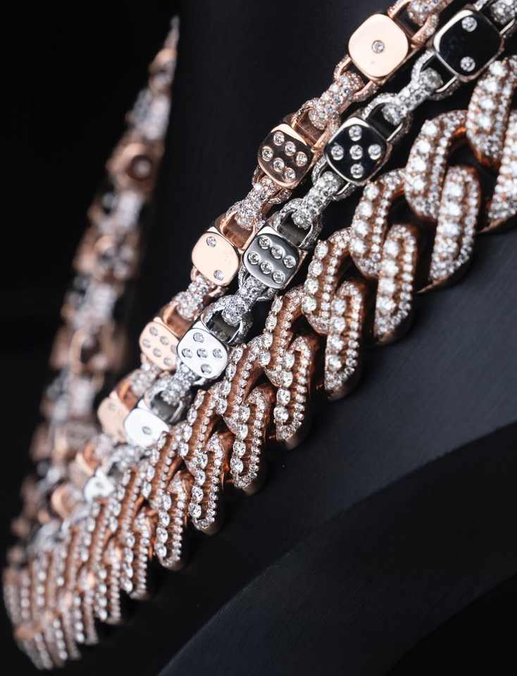 Ready to Ship High Quality 12mm 13mm 14mm 3 Cuban Link Chain Moissanite Hip Hop Jewelry 925 Silver Solid Iced Out Cuban Link