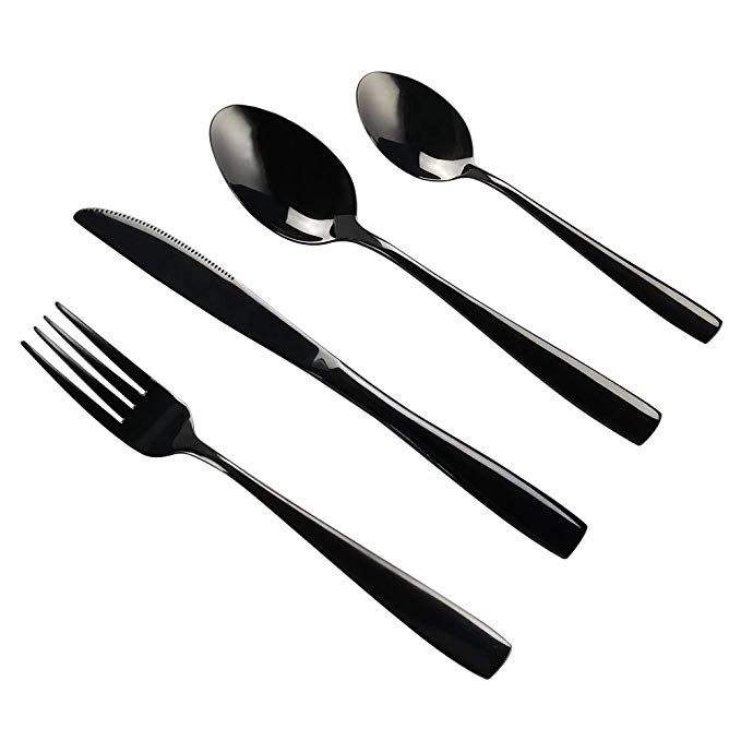 Ready to Ship Hotel Restaurant Food Grade Luxury Spoon and Fork Flatware Set Stainless Steel Matte Black Cutlery Set