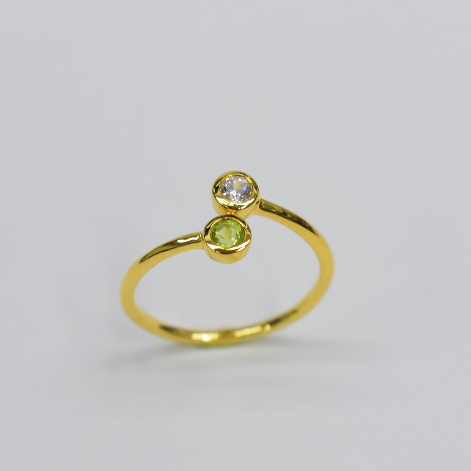 Ready to Ship S925 14K Gold Plated Minimal Natural Peridot and Cubic Zirconia Ring Customizable for Retails, OEM and ODM