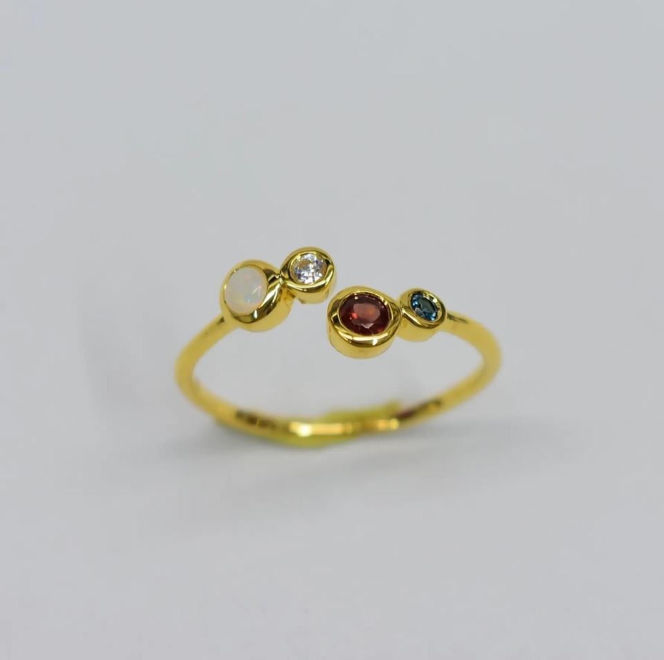 Ready to Ship S925 14K Gold Plated Minimalist Opal & Garnet Ring Customizable for Retail and OEM/ODM Product From Thailand