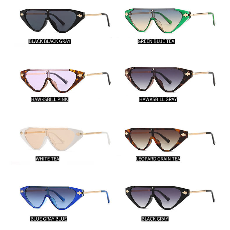 Ready to Ship Unisex Fashion Design Retro Style One Piece Flat Top Sunglasses with Triangle PC Lens UV400 Gold/White/Coffee/Gray