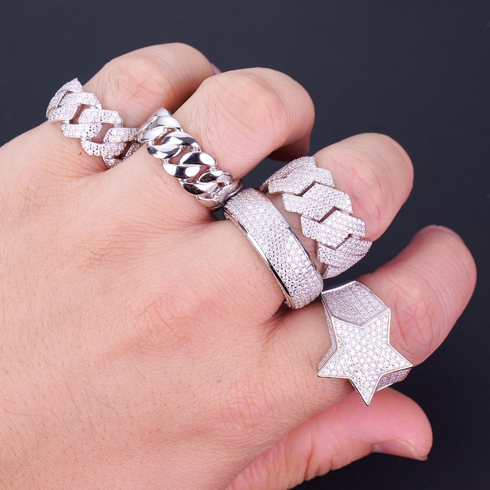 Ready to Ship White Gold Plated Hip Hop Jewelry Fully Iced Out 925 Silver Mens Cuban Cluster Moissanite Ring GRA Certification