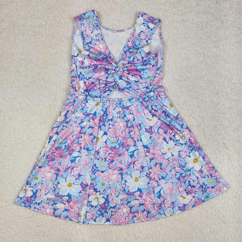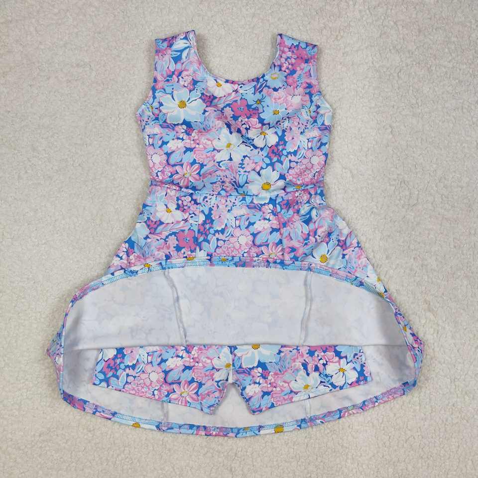 Ready to Ship Wholesale Kids Girls Summer Active Floral Print Sleeveless Stretchy Breathable Casual Yoga Dress
