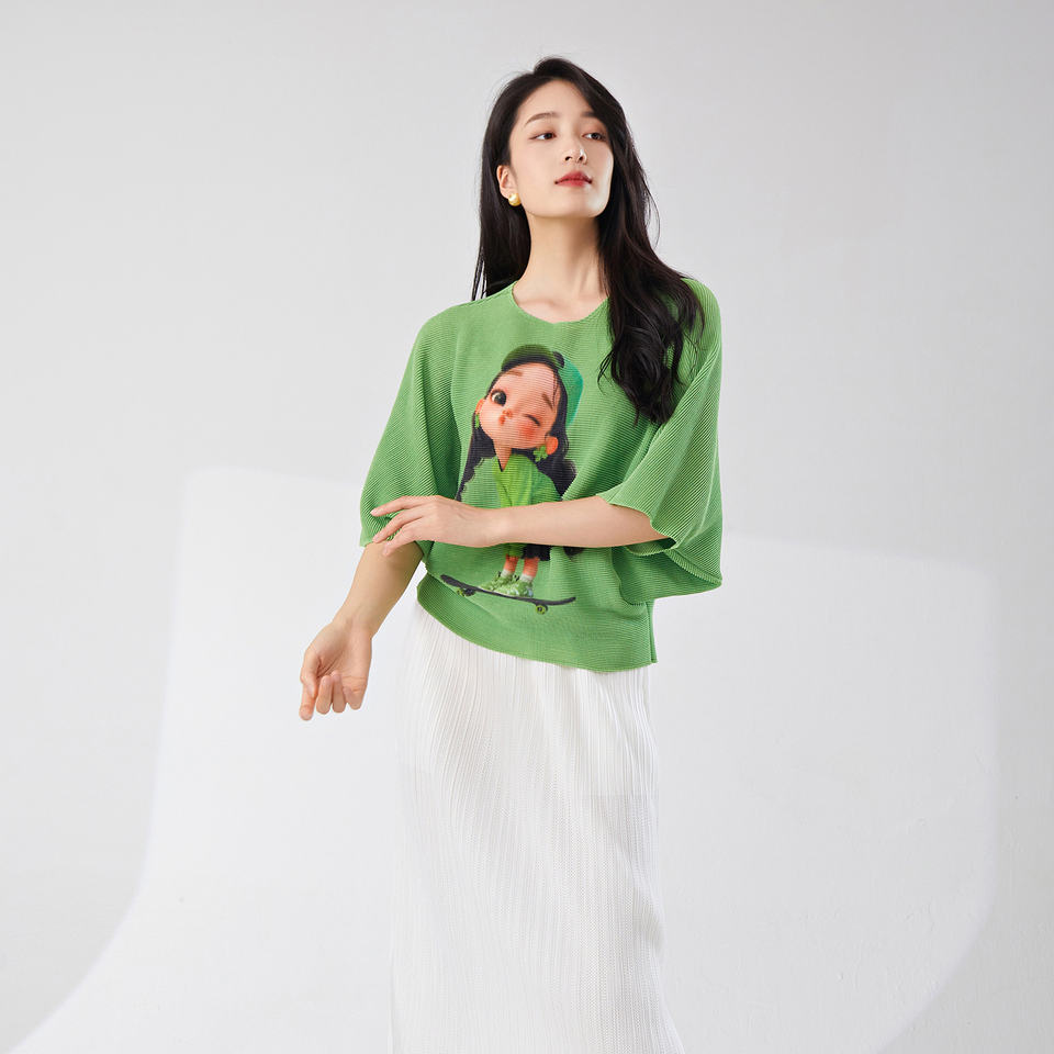 Ready-to-stock Eco-Friendly Casual Women's Loose Pleated Plus Size Anime Printed T-shirts Customizable Colors Sizes 100%