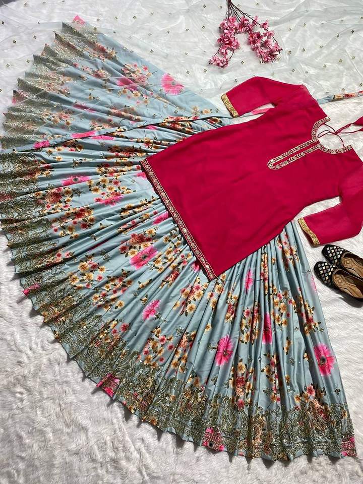 Readymade Traditional Ethnic Indian Pakistani Kurti & Dupatta Set, Silk With Embroidery Work Full Stitching Party Wear Lehenga