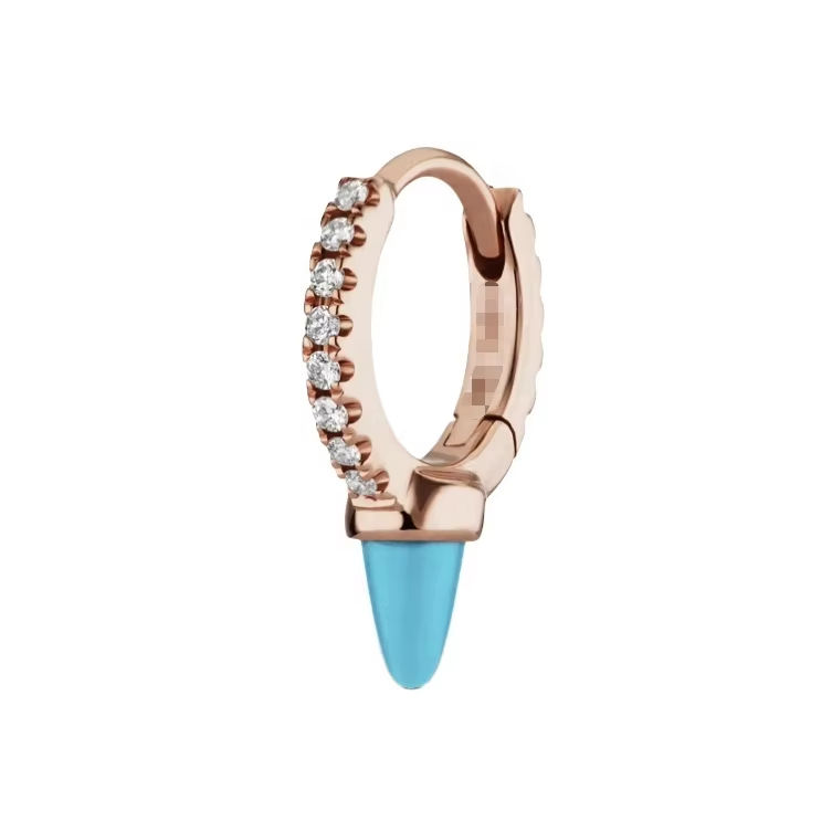 Real 18K gold with Certificate Single Turquoise Piercing Hoop Earring Custom 14k Solid Gold Diamond MariaTash Piercing Fashion