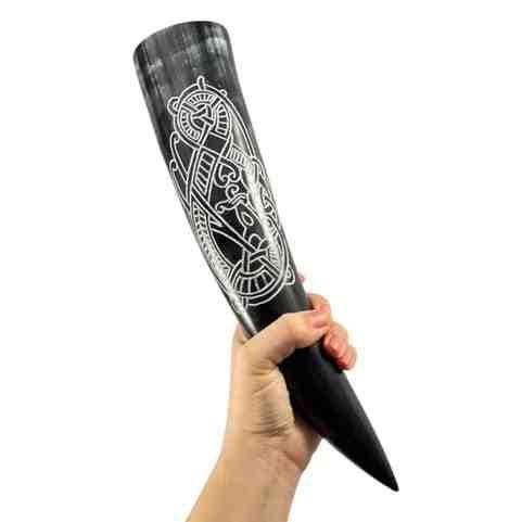 Real Buffalo Horn Mug with Solid Iron Stand Rustic Bar Serving Ale and Mead Glass Drinkware for Display